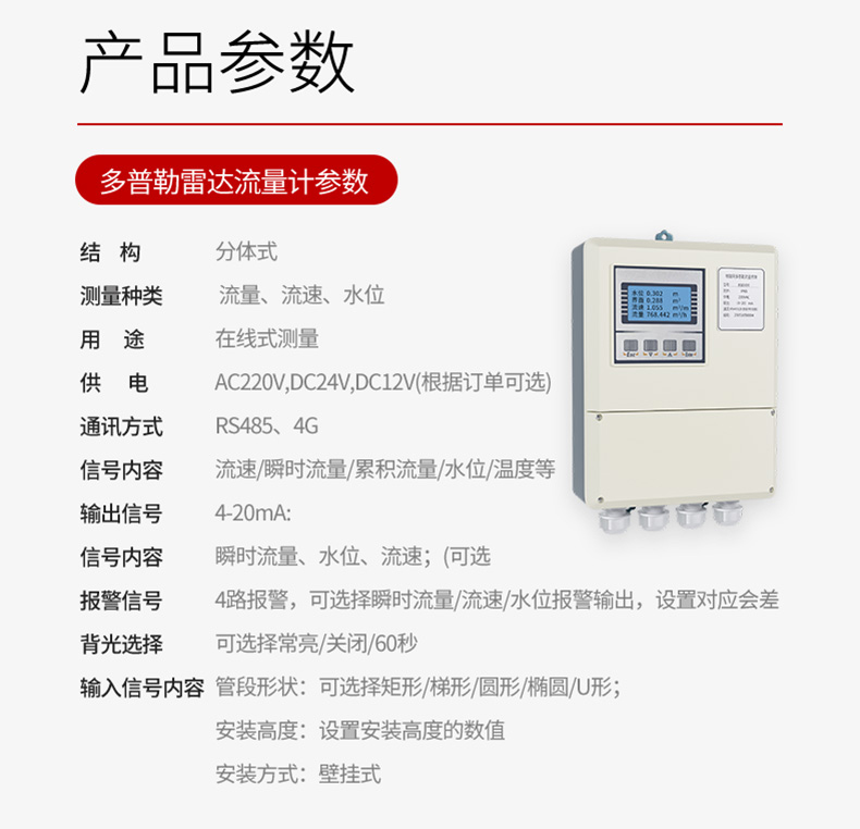 超声波多普勒流量计、高精度、宽量程、非满管测量、污雨水管网、河道流量、水渠流量