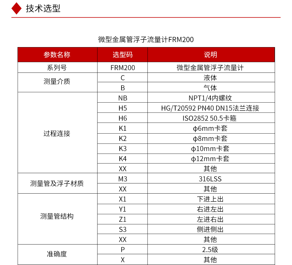 水(20℃):1L/h~150L/h 空气(20℃,1.013bar(abs):16L/h~4800L/h