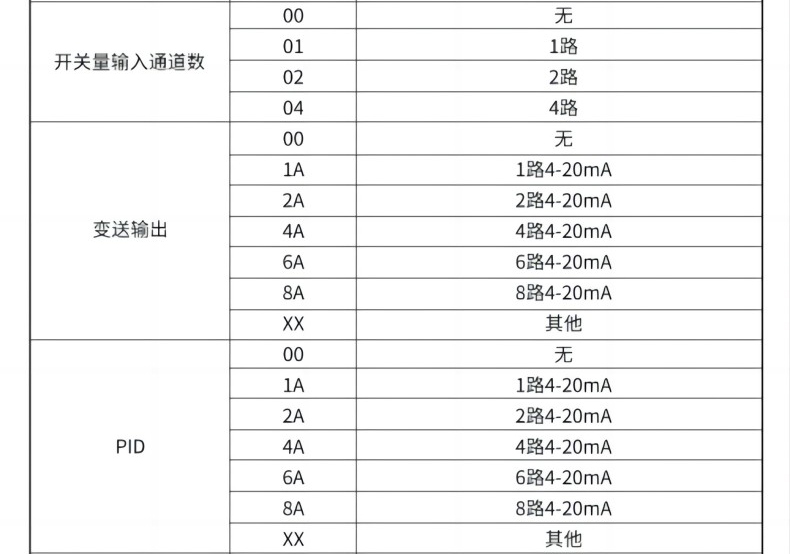 模拟量输出:4-20mA(选配)