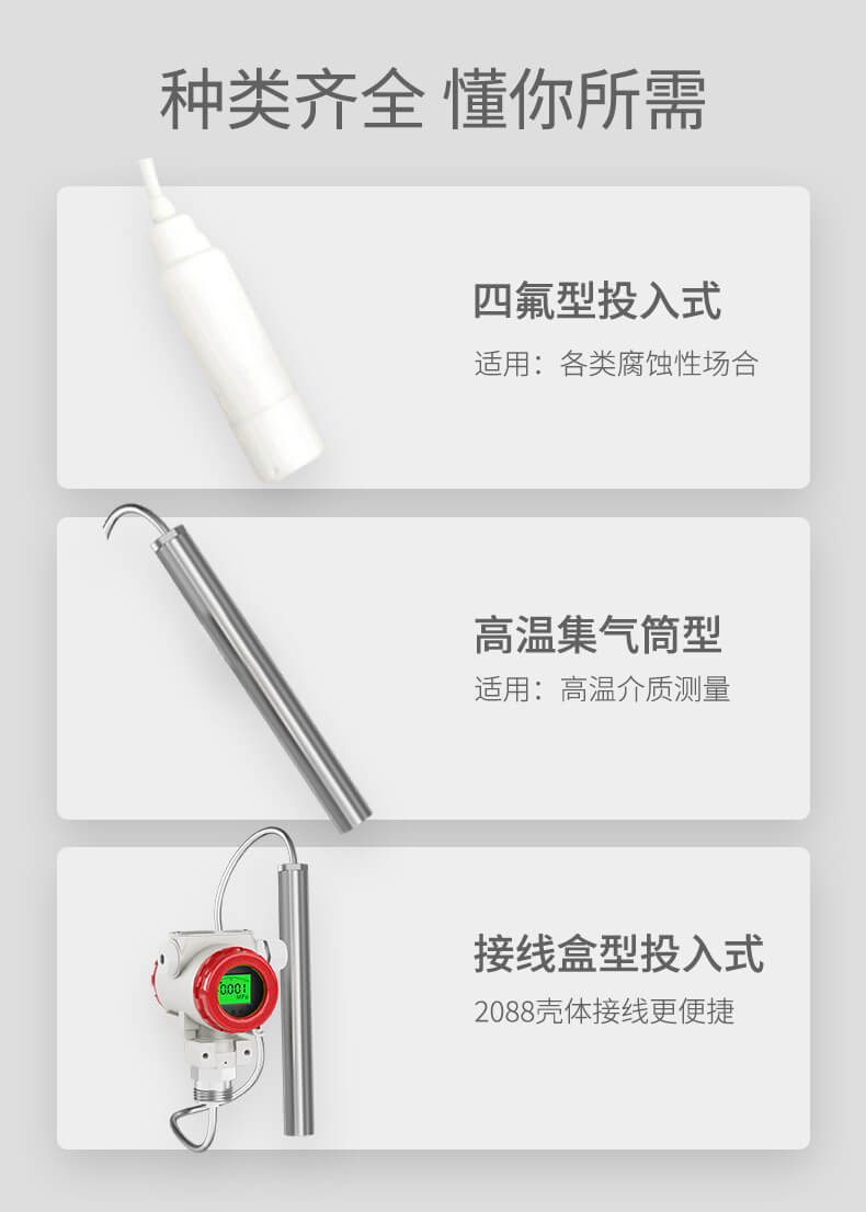 投入式液位变送器由高性能扩散硅压阻式压力传感器作为测量元件...